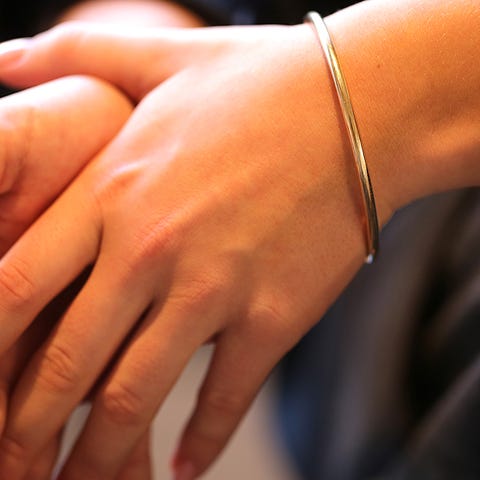Conrad Petersen: Armring af 14 kt. guld med to cabochonslebne lapis lazuli.