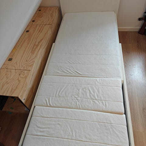 Tremmeseng med tilhørende madras i fin stand.