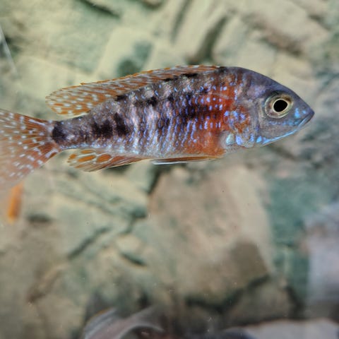 Skal holdes i små grupper, eller sammen med andre cichlider, da hannen vil jagte hunnen hele tiden hvis de holdes som et i par allene. Mundrugende cichlide der kan holdes sammen med f.eks. Malawi cichlider. Den findes i mange farvevarianter fra samme sted og det kan være spændende at se hvad der kommer ud af et kuld. google navnet og se mere om denne spændende Victoria cichlide, der er truet i naturen. et par 100,- kr. Eller 5 par for 400,- kr. Udvokset størrelse er ca. 12 cm. for hanner og 10 cm. for hunner. Det er unge fisk mellem 8-10 cm.,som er begyndt at yngle. Fiskene er i flere farvevarianter. Fiskene skal hentes i Allerød Nordsjælland. Der er både blå hanner og grønne hanner med rødlig skulder, samt alm. blanke og OB (plettet) hunner.