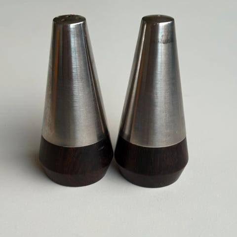 Salt / Peber sæt, Her et meget elegant og stilrent dansk salt og peber sæt i rustfrit stål og palisander, mener jeg det er.!