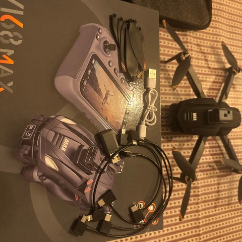 Til reservedele: Fjernbetjeningen virker, men dronen skal repareres.