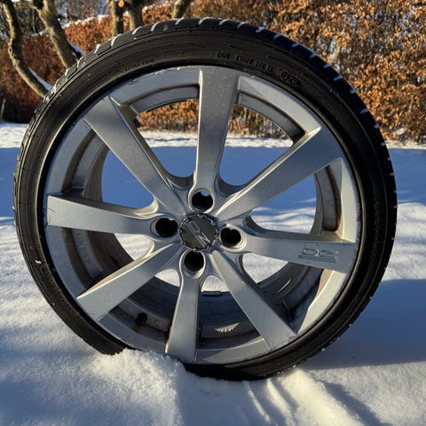 Fine fælge dog med brugs spor, kant kys. Sommer-dækkene har til gengæld ikke kørt meget og har 8-9 mm mønster og dermed mange km i sig endnu. Sælges til en god pris.