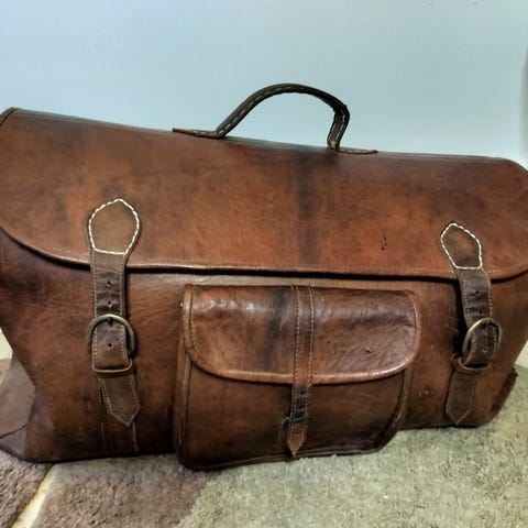 Antik Kuffert, Læder, 70 år gl., Super flot vintage kuffert med mange mange rejsemærker.