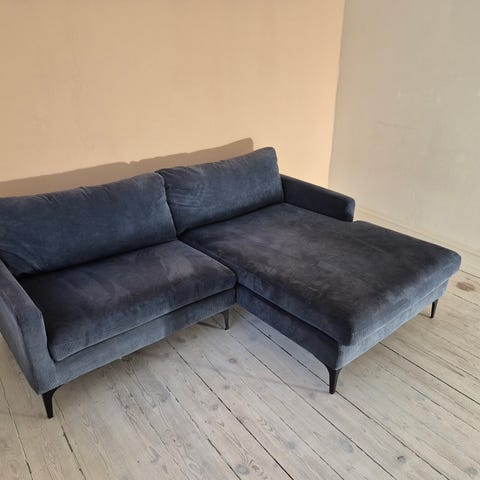 Astha 2 personers chaiselong sofa i petroleumsblå