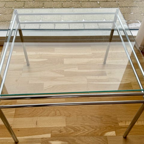 Glasbord, glas, b: 75 l: 140 h: 37, NY PRIS Fint glasbord med stålben.
