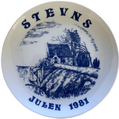 Fin hvid platte fra Scan-Lekven Design's serie af juleplatter, der gennme en længere årrække blev udgivet i samarbejde med Familie-Journalen / Aller Press.