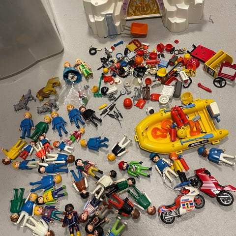 Playmobil, Gummibøde, motorcykler og gocart, Playmobil - originalt, Playmobil fra 80'erne - vintage - meget velholdt og med tilbehør.