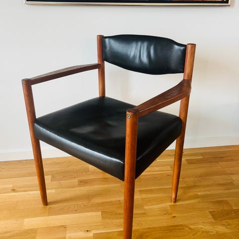 Selve stolen er teakbejdset og fremstår i pæne teak nuancer. En smuk stol.