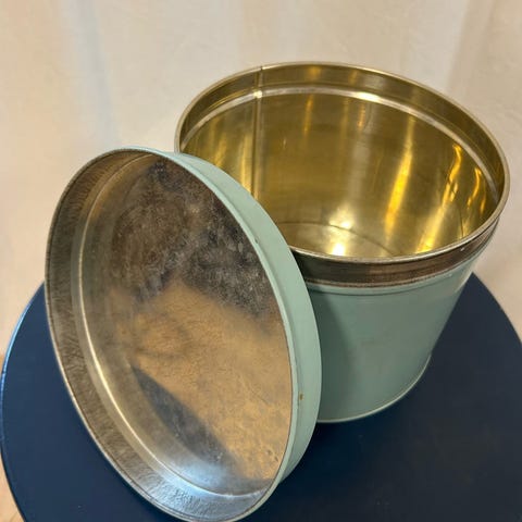 Gamle metal dåser og glas i smukke gule sommer farver.