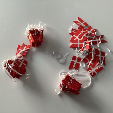 Højde 42 cm. Flaget kunne trænge til en vask, eller også kan du lave dit eget:-)