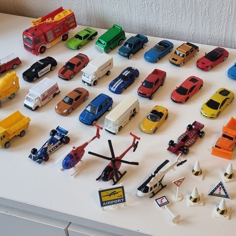 17 stk. biler, lastbiler og flyvemaskiner