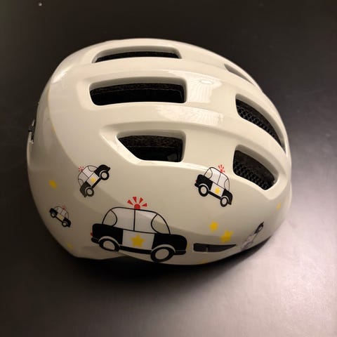 Cykelhjelm Abus børn str. 46-52. Model AB-1 Super Chilly med røde lys i skruejusteringen i nakken. Tætteste beskrivelse er NY. Mit barnebarn har ikke interesseret sig for at cykle, så den er brugt maks. 5 gange og har ikke været tabt eller "væltet". PS det røde på billederne er spejlinger. Ann. nr. T719