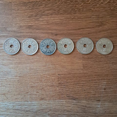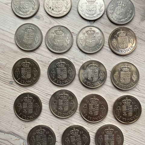 11 stk 5 kr, 1 Stk 1960 - 1 stk 1972 - 4 stk 1973 - 3 stk 1974 - 2 stk 1975