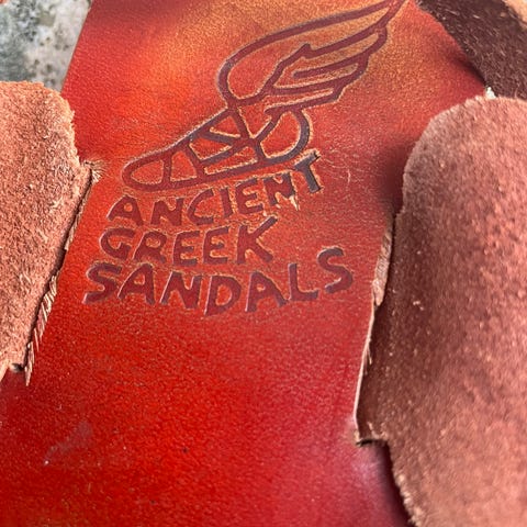 Dog har læderet fået et mærke på den ene sandal - se billede