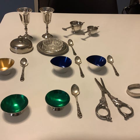 Flot salt og meber sæt med sterling sølv og emalje