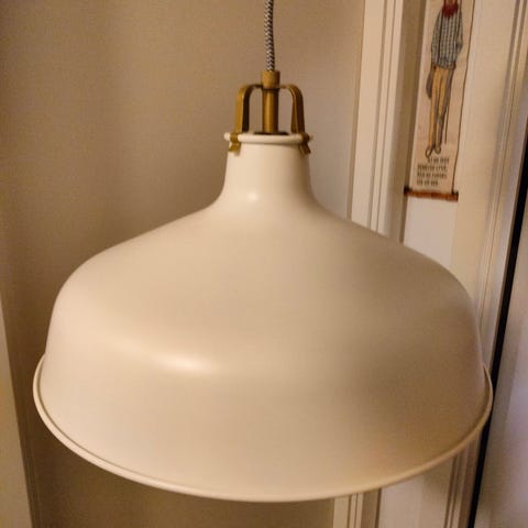 2 stk. helt ubrugte Ranarp loftslamper fra IKEA i hvid. Diameter 38 cm. Har aldrig været hængt op eller ude af æskerne. Prisen er pr. stk. med mulighed for rabat ved køb af begge. Afhentes i Køge eller København (Islands Brygge).