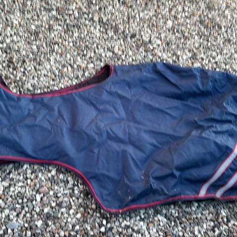 Dækkenet er kun prøvet kort på hesten, og har aldrig været redet med og har derfor ikke været ude i regn.