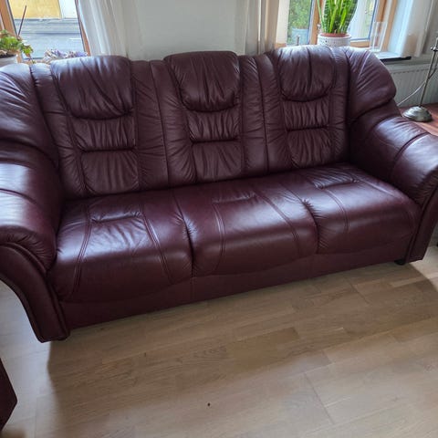 Pænt sofasæt med bord. Købt i 2022 til sommerhus. 3’er gået i stykker i siddepude. Hvis kun 2’er og bord købes er prisen den samme. Nypris for sofaer 5.500 kr. købt i MyHome. Sofabord nypris 1.000 kr. (Jysk)