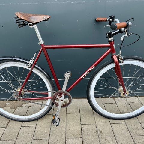 Søgeord: 1 gears cykel, single speed, singlespeed, porteur bike, stål stel. Bycykel