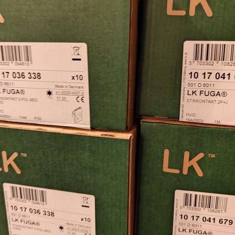 LK Fuga stikkontakt med afbryder med jord, 1,5 modul, hvid.