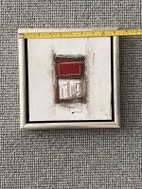 2 stk i forskellig størrelse med abstrakt motiv og begge med farverne sort, hvid og rød, så de passer sammen