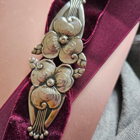 Et sjældent og velbevaret firkantet knæspænde fra 1700‑tallet, udført i massivt sølv og dekoreret med tidstypiske, klassiske ornamentale detaljer. Spændet måler 3,5 cm i højden og 3 cm i bredden og fremstår i usædvanligt fin stand trods sin alder – et vidnesbyrd om både det solide håndværk og den omhu, det gennem tiden er blevet behandlet med.