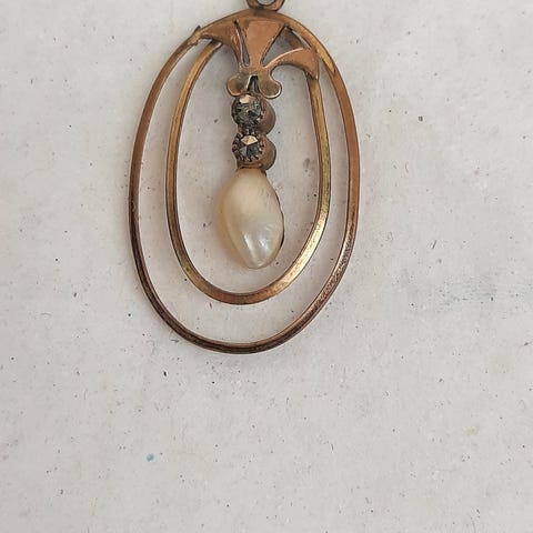 Vintage halskæde med vedhæng. Kæden er 41cm lang, vedhænget er 3cm. Forgyldningen er blevet mørk, men ellers fejler den ingenting.