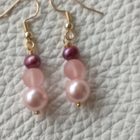 Perler og peridot øreringe. 18 kt. forgyldt stål ørebøjle. Længde 2 cm + ørebøjle