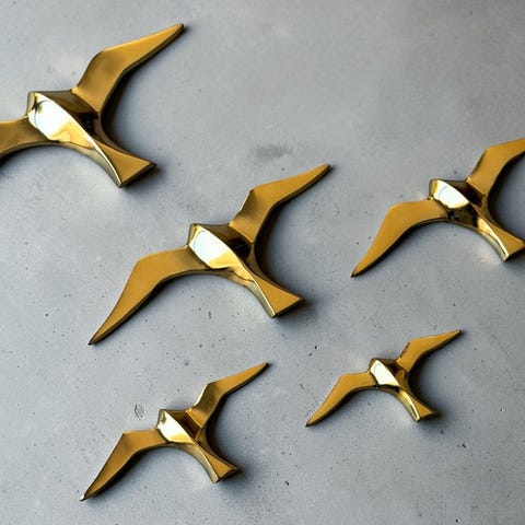 Store metal fugle. 2 sorte fugle. Længde 55cm, højde 40cm Købt i 1980’erne.