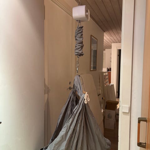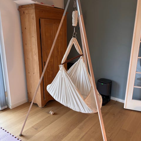 Slyngevugge. Godt brugt og trænger til en god rens. Derfor også den lave pris.