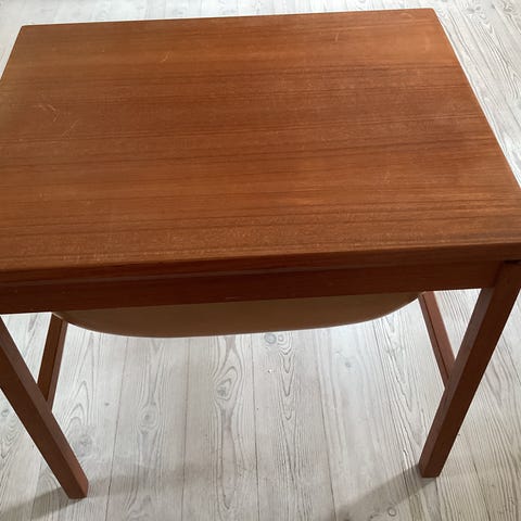 Sybord, Dansk deseign, Flot Dansk sybord i teak træ, måler 70x44x57 med hjul. Pris NU 700- afhentet