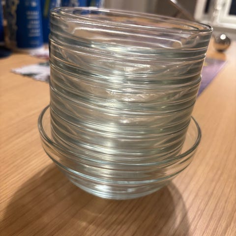 🍃 Superfine glasskåle i gennemfarvet glas til små serveringer - Til slik, nødder, oliven mv. De kan stables, så de ikke fylder så meget i skabet.