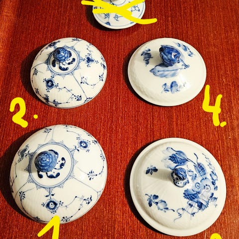 Har et lille skår indvendigt men ikke noget synligt uden på. 1.sort
