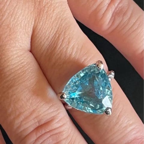 Giv dit look et ekstra pift med denne elegante ring, der har en fantastisk 2.43 karat Swiss Blue Topas som hovedsten. Den smukke, facet slebne topas er en solitaire/prinsesse-sten, der virkelig fanger lyset og tilføjer et strejf af luksus til din stil. Topasstenen, med sin dybe blå farve, er et perfekt valg til dem, der ønsker en tidløs og stilfuld ring.