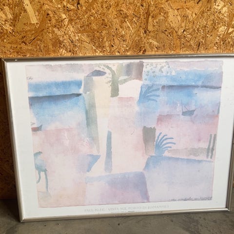Flot og farverig reproduktion i stil med Paul Klee – abstrakt og grafisk udtryk, malet med akryl/olie på lærred. Maleriet har en karakteristisk og moderne æstetik, der passer godt ind i både retro og minimalistiske hjem.