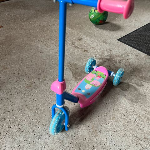 Børnescooter i lyserød og lilla plast. Fin til den lille prinsesse.
