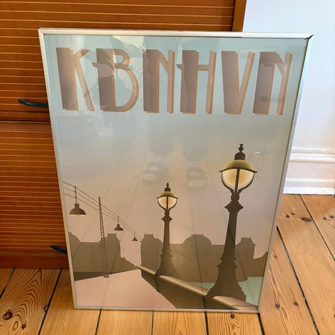 Plakat, Jarl Witzke, motiv: Abstrakt , b: 63 h: 131, Plakat af Jarl Witzke i flot håndlavet træramme.