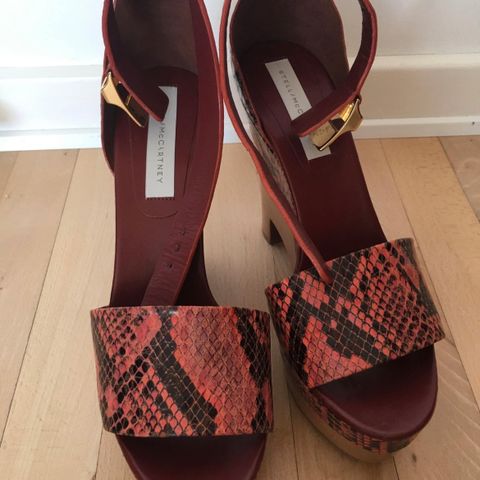 Sandaler, str. 41, Stella McCartney, Rød, Imiteret skind / kork og træ, Ubrugt, Flotte og elegante røde sandaler med plateausål i træ fra Stella McCartney.