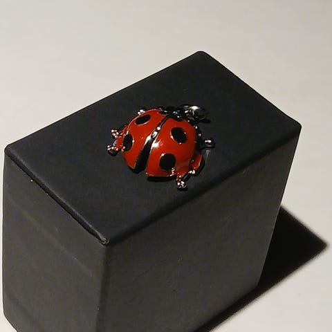 Vedhænget er udformet som en papegøje, men ligner samtidig et blad.