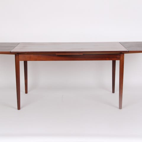 Smukt og næsten som nyt palisander spisebord med hollandsk udtræk. Altid været beskyttet af voksdug, så ingen ridser. Smukke, runde ben i tilsvarende fine stand og palisander. Opbevares i Aarhus.