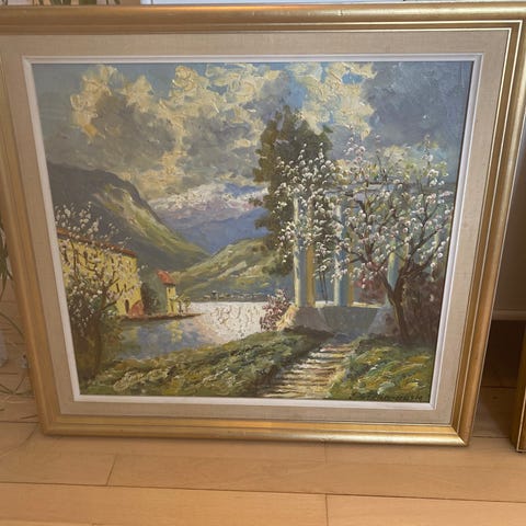 19 Maleri Olie på Lærred “Sommermotiv - Mølle og hus ved ved dam”