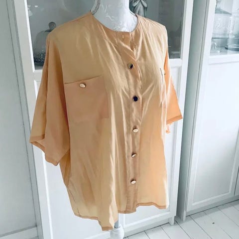 Skjorte, Mag’s magasin, str. 36, Orange, Bomuld, God men brugt, Flot lang skjorte med korte ærmer og lommer i siden. Måler 50 cm på tværs under ærmet. Længde ryg ca 80 cm.