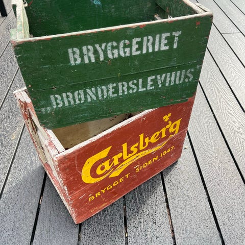 Gamle ølkasser og vand kasser med patina. 2 stk med hjul.