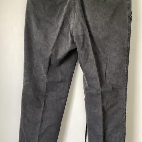 Bukser, Sunwill, str. 46, Grå, bomuld, viskose, polyester og elastan, God men brugt, 1 par klassiske herrebukser med stretch i bomuld, viskose, polyester og elastan: grå med mønstret sort/hvidt bånd indvendig i linningen. størrelse 48: livvidde 86 cm, indvendig skridtlængde 87 cm (lagt op til 84 cm) bomuld 54 pct,, 22 pct polyester, 22 pct Viskose og 2 pct elastan.
