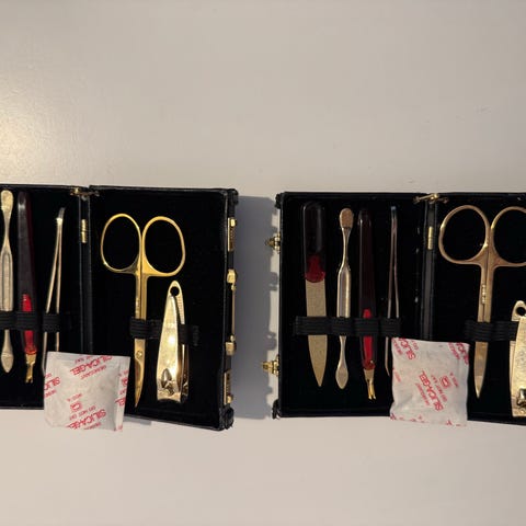 Gammelt pedicure-sæt i læderetui