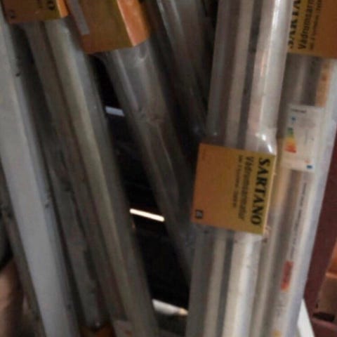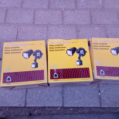 Lampe med sensor. Den er ny, men kassen bærer præg af at have ligget i værkstedet.