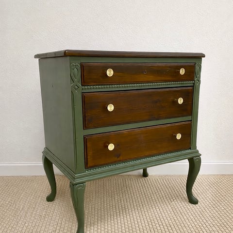 Kommoden buer let på det forreste stykke, skufferne er super flotte, og de 3 største har inddelte rum - plads til masser at smånips.