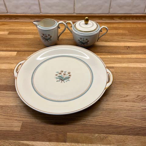 6 kopper + underkopper + kagetallerken 17cm + tallerken 20 cm