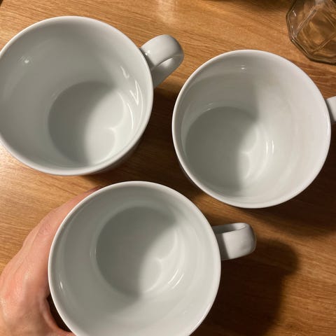 Porcelæn, Krus, Ikea, 5 smukke krus med hank. Lysegrå farve med brun kant. Ligner keramik, men går i opvaskemaskinen.