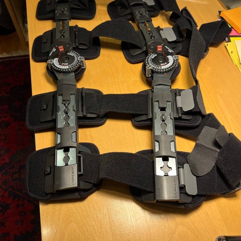 Den knæskinne sælges da den ikke længere bruges, skinnen er meget komfortabel og kan juster til den enkelte.